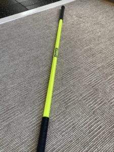 上記の黄色の棒を使って体の可動域を獲得していきます。ゴルフのみならず体が硬い人にも活用しております。